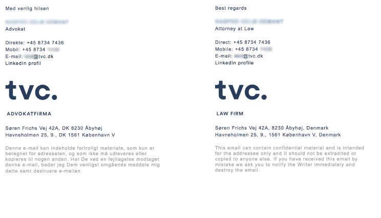 E-mail-signatur i dansk og engelsk version.