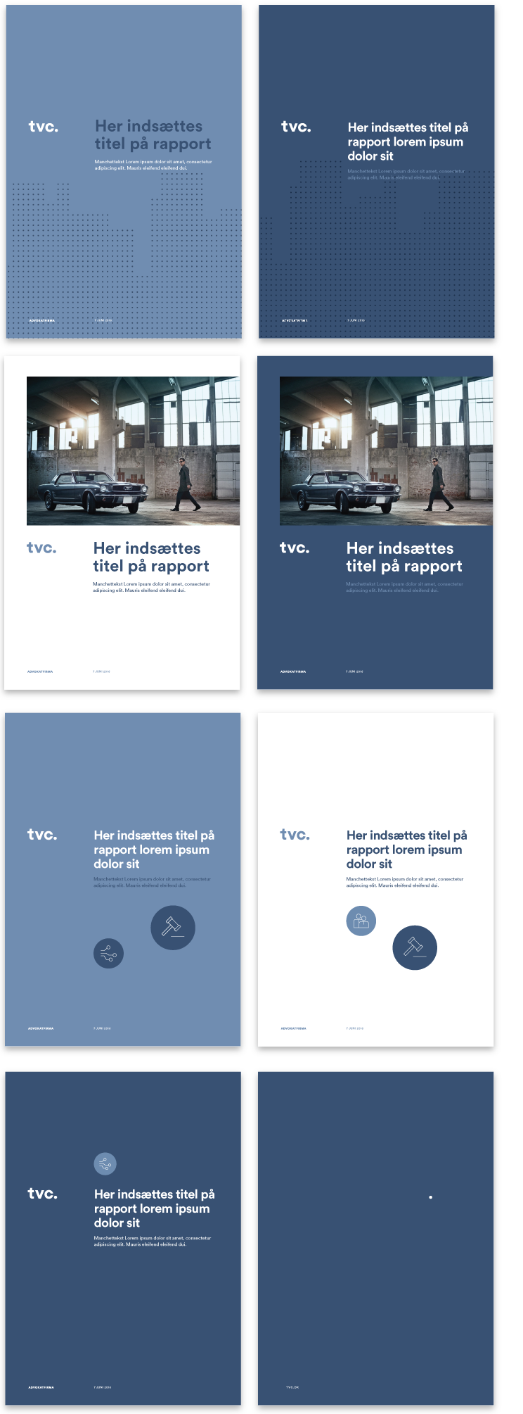 Til de sociale medier benyttes det negative logo på mørkeblå baggrund. TVC bruges uden Advokatfirma, så det også kan læses i helt små ikonstørrelser.