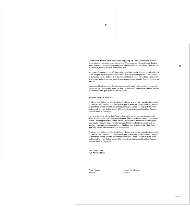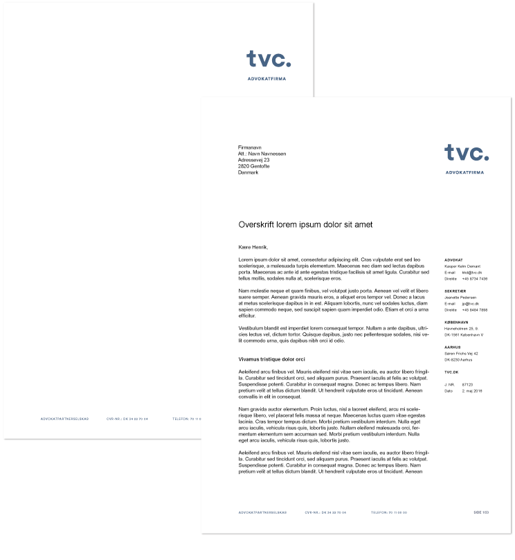 Der er lavet fortrykt brevpapir med logo og faste informationer i bunden. Vær opmærksom på at bruge de korrekte Word-skabeloner til de forskellige breve.